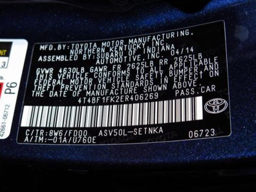 VIN (Vehicle Identification Number): 4T4BF1FK2ER406269