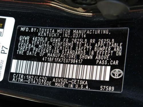 VIN (Vehicle Identification Number): 4T1BF1FK7EU798417