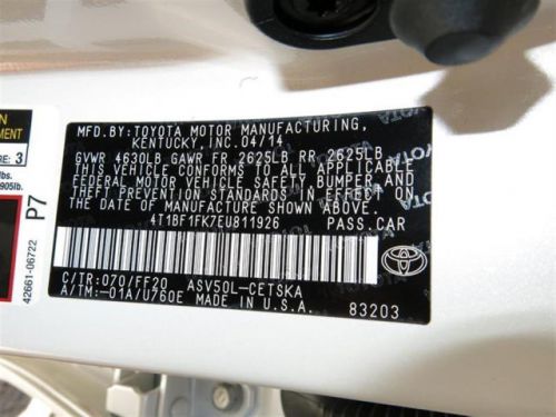 VIN (Vehicle Identification Number): 4T1BF1FK7EU811926