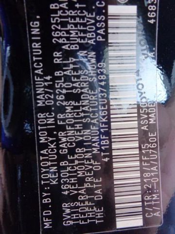 VIN (Vehicle Identification Number): 4T1BF1FK6EU374839