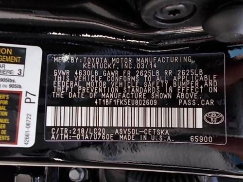 VIN (Vehicle Identification Number): 4T1BF1FK5EU802609