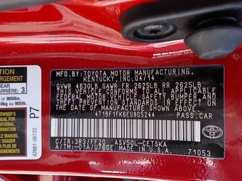VIN (Vehicle Identification Number): 4T1BF1FK6EU805244