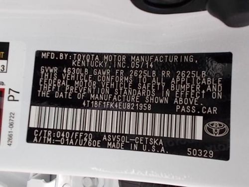 VIN (Vehicle Identification Number): 4T1BF1FK4EU821958