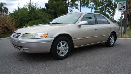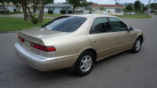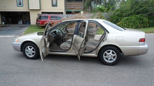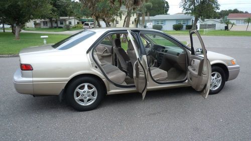 This a very nice Camry... Actually, its condition is quite remarkable. I have always concluded that Camrys from this era were the best ever built! Everything on this Toyota works as it should including very cold A/C, CD Player, Cruise Control, etc. It drives and runs VERY well, steering is straight, etc. Tires are in like-new-condition also. Cosmetically is considerably well giving the age of the car. I would say that paint finish is above fair, but it has some scuffs and blemishes here and there. The interior is also in pretty good shape. Carpets have some light stains but nothing significant. The floor mats are included but these were shampoo and were still damp by the time I took attached photos. The floor mats look much better now, but I will leave it up to the new owner to decide if they want to use them. I will put them in the trunk!