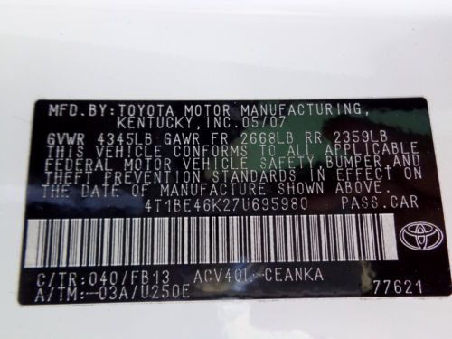 2007 toyota camry le 4dr sedan(US $7,640.00)