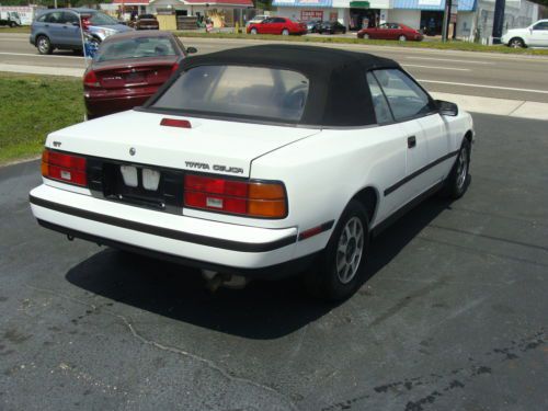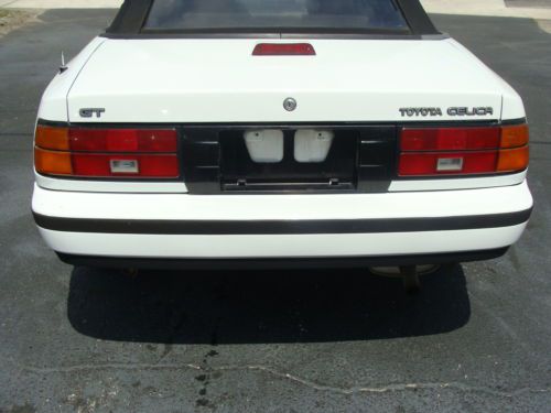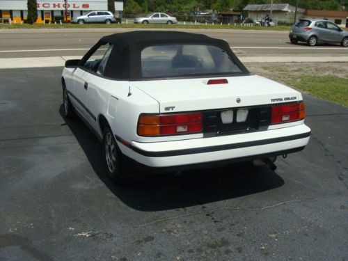 UP FOR NO RESERVE AUCTION IS A VERY CLEAN 1988 TOYOTA CELICA GT CONVERTIBLE, NICE WHITE EXTERIOR IN ABOVE AVERAGE CONDITION FOR THE YEAR, GRAY CLOTH INTERIOR WITH NO RIPS OR TEARS, DASH AND DOOR PANNELS IS IN GREAT CONDITION, A/C (NOT BLOWING COLD) HEAT, AM FM CD, POPWER WINDOWS, LOCKS, MIRRORS ALL WORK GREAT, TILT WHEEL, BLACK CONVERTIBLE TOP THAT DOES NOT LEAK, (NORMAL WEAR FOR THE YEAR) THE ECGINE AND TRANSMISSION RUN GREAT! THIS IS A GREAT CAR FOR RESTORATION OR EVERY DAY DRIVER, POP UP HEADLIGHTS WORK GREAT! THESE LITTLE CARS ARE RARE AND HARD TO FIND IN THIS CONDITION, RUST FREE, IF YOU HAVE ANY QUESTIONS ABOUT THE CELICA, PLEASE FEEL FREE TO CALL MIKE AT 904-993-1303 CELL 904-337-1380 OFFICE, IF YOU WOULD LIKE TO INSPECT THE CAR PRIOR TO BIDDING, PLEASE FEEL FREE TO STOP BY CARZ 4 LESS AT 10244 BEACH BLVD IN SUNNY JACKSONVILLE, FLORIDA, WE HAVE A $ 199.00 EBAY FEE ON ALL SALES, ALL IN STATE DEALS ARE SUBJECT TO SALES TAX AND TAG FEE'S GOOD LUCK AND THANK YOU FOR BIDDING!