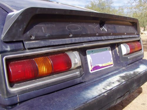 FOR SALE BY OWNER - A COMPLETE CUSTOMIZED 1981 TOYOTA CELICA SUPRA, THIS CAR HAS UNIQUE ONE-OF-A-KIND TOYOTA MADE FRONT AND REAR SPOILERS, LOWER STAINLESS STEEL TRIM, 14" SIMULATED WIRE SPOKE WHEELS, LEATHER BUCKET SEAT INTERIOR, AND A CUSTOM BLUE METALLIC PAINT JOB. THIS CAR WAS REALLY SOMETHING IN IT'S DAY, BUT AS YOU CAN SEE IT NOW REQUIRES SOME ATTENTION FROM THE NEXT OWNER. THE CAR IS COMPLETE, IT OFFERS AN IN-LINE ELECTRONICALLY CONTROLLED FUEL INJECTED 6 CYLINDER ENGINE, A 5 SPEED MANUAL TRANSMISSION, POWER STEERING, 4 WHEEL POWER DISC BRAKES, LIMITED SLIP REAR DIFFERENTIAL, LEATHER INTERIOR, TILT WHEEL, CRUISE CONTROL, POWER WINDOWS AND POWER DOOR LOCKS AS WELL AS MANY OTHER UNIQUE TOYOTA FEATURES STANDARD ON THE CELICA SUPRA MODELS. THIS CAR DOES N O T RUN AT THIS TIME, IT HAS A NEW RADIATOR AND HOSES ALONG WITH A NEW IGNITION LOCK. SOME ITEMS HAVE BEEN REMOVED TO START THE RESTORATION PROCESS, AND ALL THOSE PARTS ARE INCLUDED WITH THE CAR. THE CAR WILL BE SOLD AS A WHOLE OR CAN BE PARTED OUT IF YOU NEED INDIVIDUAL PARTS - JUST LET ME KNOW WHAT YOU WANT TO DO. THE CAR HAS A CLEAR ARIZONA TITLE IN HAND, BUT WILL NEED TO BE TOWED AS IT DOES NOT RUN AT THIS TIME. NO TRANSPORT IS INCLUDED IN THIS AUCTION, THAT IS THE WINNING BIDDERS RESPONSIBILITY. ONCE WON, THE CAR SHOULD BE PICKED UP WITHIN A 14 DAY WINDOW OR STORAGE CHARGES WILL APPLY. I'M NOT LOOKING TO STORE THIS CAR, I NEED IT REMOVED FROM THE PROPERTY. ASK ALL QUESTIONS BEFORE YOU BID, NOT RESPONSIBLE FOR YOUR ERRORS, AND PLEASE ASK YOUR MOM, WIFE, SISTER, BOSS, GRANDMOTHER, STEP-MOM, DAD, BROTHER, SON, PRIEST, MONK, ETC- FOR PERMISSION TO BUY B E F O R E YOU BID. THIS ONE OF A KIND TOYOTA HAS SOME GREAT FEATURES AND BEAUTIFUL PARTS FOR YOUR RESTORATION, ASK ALL THE QUESTIONS YOU LIKE. PAYMENT DUE WITHIN 5 BUSINESS DAYS, PAYPAL IS NOT REQUIRED. THANK YOU FOR LOOKING. MERRY CHRISTMAS AND HAPPY NEW YEAR! TAKE THE TIME TO THANK A SOLDIER AND THIER FAMILY FOR ALL THEY DO FOR US AS A NATION. WITHOUT THIER EFFORTS AND SACRIFICES, WE WOULD NOT BE ENJOYING ANY FREEDOMS AT ALL. THEY BUILT THIS COUNTRY STRONG AND KEEP IT THAT WAY.