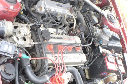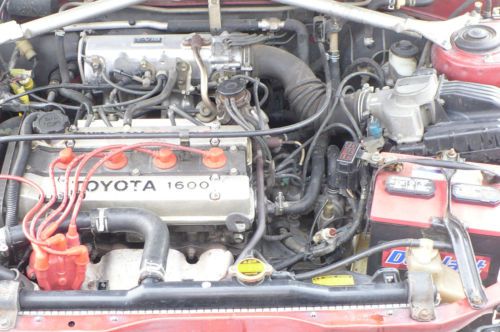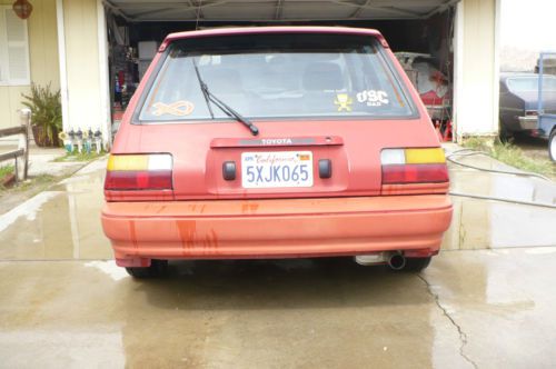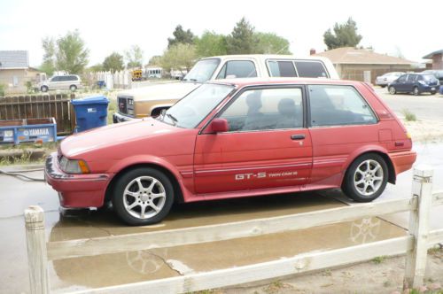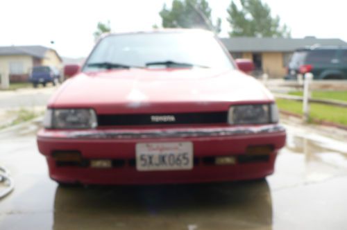 Fully loaded hard to find 1988 Toyota FX16 GTS with a 1600 twin cam, 16 valve engine. Its over 20 years old and in real nice condition. Original paint is faded but never wrecked, Engine runs strong and shits smooth still gets over 30 MPG. Has power windows door locks and mirrors has AC but needs to be charged. Interior in good shape no rips on seats, but are a little faded. Dash is in great shape with no cracks. Suspension is tight. Car has been lowered a bit and is adjustable. Aftermarket wheels with fairly new tires and new battery has front and rear disk breaks with cross drilled rotors up front. Now for the bad. Passenger window has trouble going up and down, and the brake lights wont turn off. other then that its a nice little car. Car is registered as Non Operation for no insurance. Car is for sale locally and seller has the right to pull ad form listing.