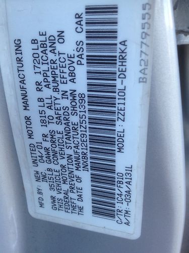 2001 Toyota Corolla CE, 4Dr, Automatic, 1.8 Litre, AC, Stereo. The car is clean and has 129 Kml. The car runs great and the AC makes cold. The exterior is silver and interior is blue. The car has salvage title because had damages on the right fender and right door. The damaged parts were replaced. The registration is paid up to April 2014. The title is to be transferred to successful bider.