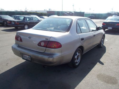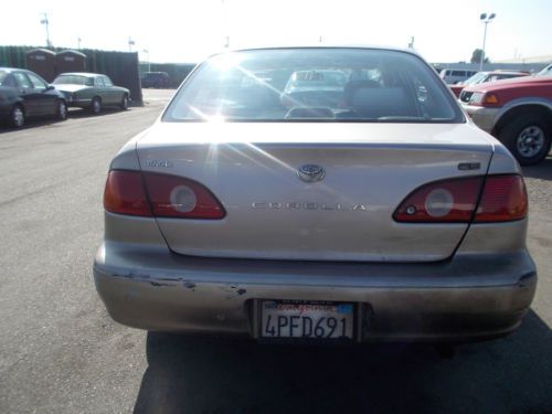 Up for auction is a 2001 Toyota Corolla that was recently donated to a national charitable foundation and is being sold with NO RESERVE. The vehicle is equipped with a 4cyl engine and automatic transmission. The odometer shows 89,953 miles. It’s fairly well equipped with most of the options. The seats are tan and torn, although a good detail will make a huge difference. The exterior of the car is gold and is showing signs of wear and is faded. It has a few door dings and scratches. The tires appear to HAVE ROUGHLY 30% road life left. Please refer to the photos included in this auction for more description details. This vehicle RUNS but does NOT drive. ***BLOWN HEAD GASKET***