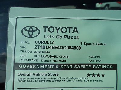 New 2013 Toyota Corolla S Special Edition Hot Lava $2000 Off Msrp on 2040-cars