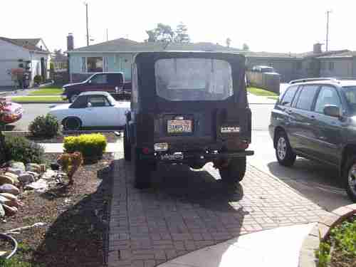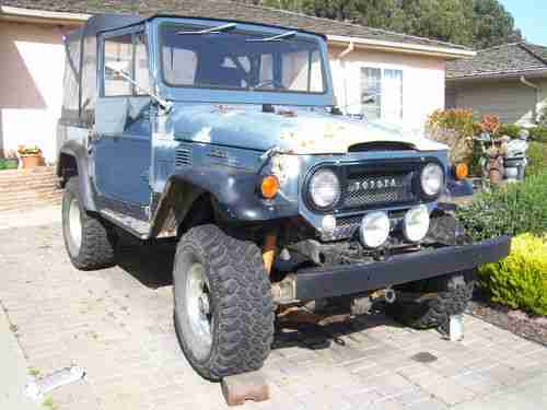 1967 FJ40 WITH CHEVY 283 V8 RUNNING WELL,REGISTERED AND DMV TAGGED AS 1965 CHEVY V8 AS SEEN IN THE DOOR TAG,HAS EDELBROCK ALUMINUM INTAKE AND HOLLEY PERFROMANCE 4 BARREL,FENDERWELL HEADERS THAT WENT STRAIGHT TO DUAL FLOWMASTERS,VERY LOUD,HAS CD PLAYER,TACHOMETER,AFTERMARKET TEMP AND OIL PRESS ,SPEEDO WORKS WELL,ALL LIGHTS WORK,HAS FULL HARD DOOR,SOFT DOORS AND HALF SOFT DOORS,COMES WITH FULL SOFT TOP AND BIKINI TOP,HAS NEWER SEATS AND NEWER GAS TANK,PASSENEGER SEAT NEEDS TO BE MOUNTED STILL.HAS SAGINAW 4 SPEED TRANNY AND ORIGINAL NP T CASE,RUNNING GEARS ARE ALL ORIGINAL EXCEPT FOR A MILD LIFT,TIRES ARE NEW,WHEELS OXIDIZED BUT STILL ;POLISH UP NICE.FRAME IS SOLID,THE ORIGINAL COATING IS JUST NOW PEELING OFF, BODY NEEDS WORK AS THE PREVIOUS OWNER RIPPED OFF THE CORNERES OF THE WHEEL WELLS AND BANGED UP THE HOOD,WILL COME WITH SPARE FRONT FENDER SKIRTS AND FRONT GRILL AND BIB,TRIED TO RESTORE BUT SPACE AND JERK NEIGHBORS WON'T ALLOW ME TO FINISH, I DROVE THIS DAILY BUT NEVER OFFROADED, THIS IS SO FAR THE ONLY FJ I HAVE SEEN WITH A DMV ISSUED DOORTAG FOR A CHEVY V8 ENGINE,I INCLUDED THE DOOR TAG PICTURE FOR REFERENCE.