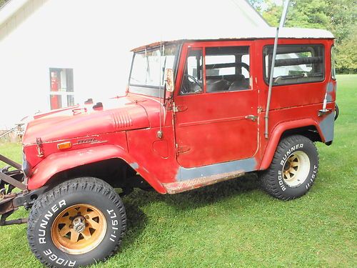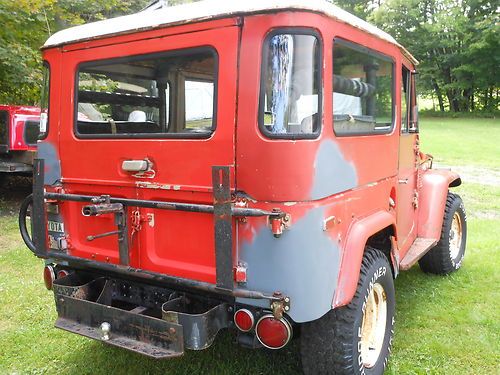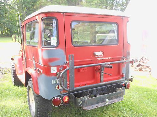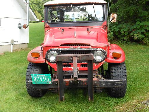Unrestored original 4X4, Owned since 1978, has small hyd. snow plow. It has be shed stored for approx. 20yrs. Repairs to date: new water pump and hoses, new or rebuilt Hyd. clutch, master and slave cyls. Works fine, New or rebuilt brake master and wheel cyls. New metal hyd. brake lines, brakes are great. New battery, new polyurethane gas tank and lines. There was rust in the rear quarters and rocker panels, and drivers floor, all of which have been repaired patch panels using P.O.R. 15 products. It needs paint , tires and TLC. It is fully operational for off road. It is very solid and runs strong with little effort could be made road worthy. This is a very original FJ40. It also comes with a soft top and doors. 98% complete.