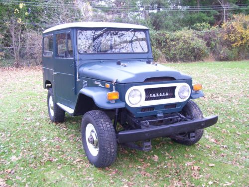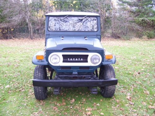 You are bidding on a 1973 Toyota FJ Cruiser also known as the FJ40. Speedometer shows 04029 so I assume its 104,029 actual mileage. It has new hub caps, front brakes and wheel cylinders. Also has a new battery. Runs 100%. Factory equipped with a 3 speed transmission, 4 wheel drive and a 6 cylinder engine. Body is solid. Email any questions. I can also send additional pictures of specific areas upon request. Vehicle is located in Wrightstown, PA.