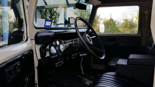 Built in May of 1979 – All new parts were installed between April and Sept of this year 2014. Tan paint with black rhino lined sides and fenders New seats New tires 15x 33 Remote air sensors for tires Chevy 350 TBI Snorkel New custom radiator AND 4000cfm FAN New Vintage Air New ABS pump for air lockers Front and rear air lockers New Ball joints Automatic Trans Rear tire rack with Jerry can Front Australian brush guard 8000 lb. winch 4” lift Front driving lights After market rear back-up lights Battery shut off switch Tow bar New seat belts New dash upper and lower Center locking console Under coated New brakes New pinion gears New distributor and coil New door window mechanisms Bimini top |