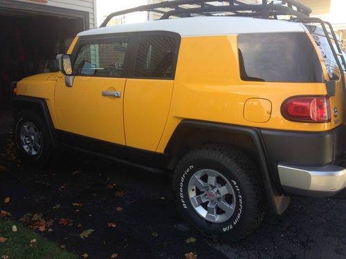 Up for sale is my 2007 FJ Cruiser If you are in the market for an FJ I don't have to explain much! My FJ has TRD wheels, TRD front bumper, TRD cat back exhaust, TRD Badges, brand new BFG TA/KO's, and KC lights. This vehicle has been maintained very well with royal purple fluids everywhere, K&N air filter, only the best. It is a 6-speed RA61F manual transmission with VF4B transfer case and limited slip differential, giving you many on and off road options and also a locking read diff. I also have a transferable warranty, its a platinum protection 5 year/60,000 mile warranty that started on 2/21/11 so you will have 3 years and about 30,000 miles remaining. As you know the FJ Cruiser features a short wheelbase, stocky frame, and grille/headlight arrangement much like the original FJ40. Other throwback design cues include a nearly vertical windshield with three windshield wipers for maximum surface area coverage. The FJ Cruiser is also Toyota's only current vehicle to use the name "Toyota" spelled out across the grille instead of the corporate emblem which has been in use since 1990, another reference to the FJ40 and other older Toyota trucks. The FJ's body features rear opening access doors that give a unique look to the SUV. Special high strength steel was used to give the vehicle side impact protection without the need for a door pillar. The interior of the FJ features many design elements focused on enhancing off road practicality. All interior surfaces are covered with washable rubber materials to aid in fast clean up after heavy outdoor use. The FJ also incorporates oversized controls to aid drivers with gloved hands. The 3 gauge cluster (with compass, temperature, and inclinometer) as well as the 110 volt rear outlet.
