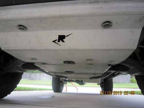 On the outside, it has custom heavy duty front and back bumpers, custom fabricated Kyle Green roof rack with 4 lights, shovel, and high lift kit mounted. There is a Warn winch along with 2 HID lights on the front as well. There is metal plating under the vehicle to protect if you go off road as well as rock slider bars along the side of the vehicle. It has a reverse camera that shows up on the rear view mirror. It has a Safari Snorkel, over sized tires with a full size spare, and a small lift. It has been dulled out with Flowmaster exhaust and Magnaflow tips. The engine has a K&N cold air intake kit installed as well. These allow the car to be faster, sound better, and get better gas mileage.