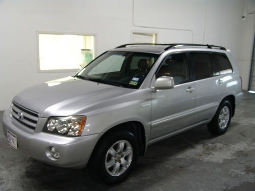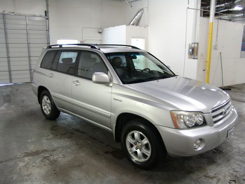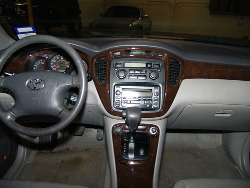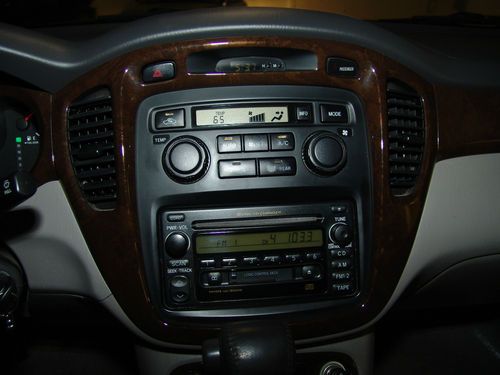 Year: 2002 Number of Cylinders: 6 Make: Toyota Model: Highlander Trim: Limited Sport Utility 4-Door Warranty: Vehicle does NOT have an existing warranty Drive Type: FWD Options: Tilt Wheel, 6 Cd Changer, Wood Grain, Floor Mats, Sunroof, Cassette Player, Leather Seats Mileage: 94,417 Safety Features: Anti-Lock Brakes, Driver Airbag, Passenger Airbag, Side Airbags Sub Model: Limited Power Options: Air Conditioning, Cruise Control, Power Locks, Power Windows, Power Seats Exterior Color: Silver Interior Color: Tan