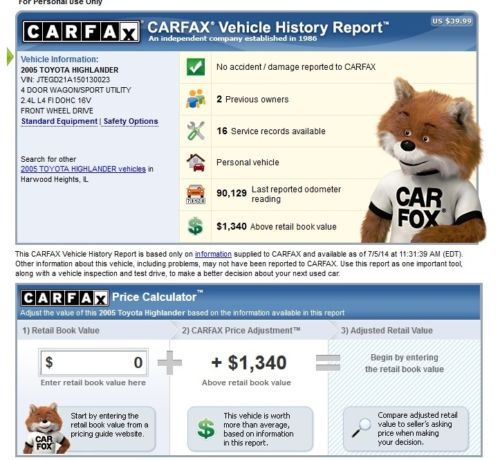 The car has a remote start and rubber WeatherTech floor mats. Clean title and clear CarFax history showing regular oil changes at Schaumburg Toyota dealer. The car has NEVER been involved in any accident. No rust. Recently installed Michelin Latitude Tour tires, rotated regularly by Costco, with the remainder of over 30,000 miles warranty. Mileage is about 92,000. This was Toyota certified car with warranty until 100,000 or 7 years. |