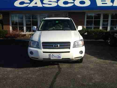 This vehicle is a wonderful, clean, 4WD Hybrid 2006 Toyota Highlander Limited. This is loaded for the year, has third row seating, leather moonroof, and power seats. This vehicle comes with a Maine State Inspection sticker, and to pass only needed new Winshiel wipers. The previous owners were very meticulous of their vehicle and kept it in tip-top shape. There is a lot of tread life and brakes left on this wonderful gem! We took this in on trade and have no hesitation to make it your next vehicle! This is completely smoke free and only has a minor character flaw in the passengers seat, with a small tear. All of these wonderful features are coupled with Navigation and Heated Seats!
