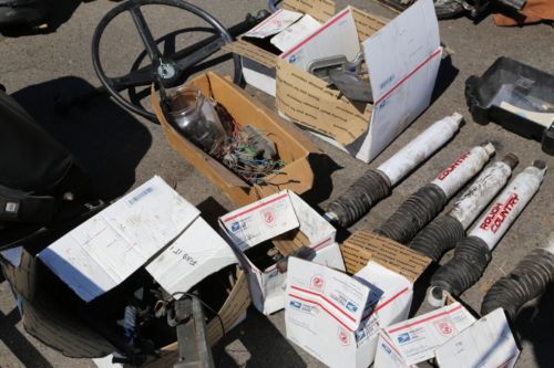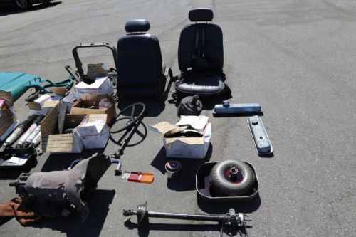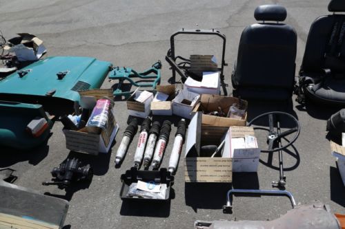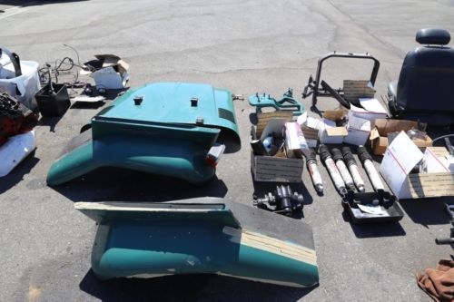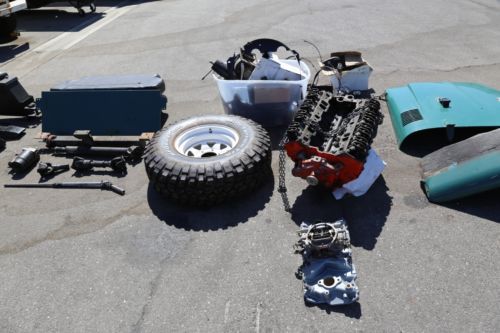 This FJ40 is a body off restoration that was stalled when the owner decided to travel the world on a yacht. So what you see here shows how far he got, and what parts he had accumulated. Nice body, very clean chassis. Power disc-drum brakes, AA P/S kit, stock column and wheel. Uncut fenders. Small block GM V8, reportedly running and in great shape, although I am unable to verify that. Stock four speed transfer case, GM auto with adapter. Tons of small parts, many new parts. Comes as you see here, including all of the boxes of godies. Floors are original and very nice, Rhino coated and carpeted during the restoration. Brand new BF Goodrich tires. What you see is what you get. Everything is packed back in the truck for transport. Clean title. Sold as is. A great head start for your resto. Thanks, JW
