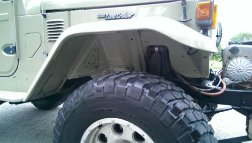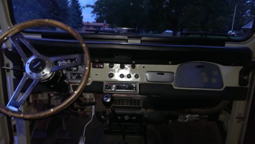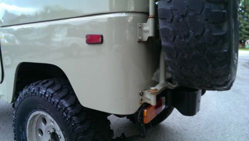 Engine- This FJ40 has the original straight 6 in it with low miles (around 110k miles). The really nice thing about this engine is the fuel injection. There is a TBI injection kit from Man-a-fre. This kit is solid and has run really well for me, it runs well because I took the time to buy all the necessary parts i.e. painless wiring harness, all new sensors, brand new electronic distributor etc. To make it run like it should I had Howell EFI burn a computer chip especially for this FJ40. There is nothing like getting into this Cruiser and having it crank right up and go. Also the gas mileage is around ~18 MPG depending how heavy your foot is. Other than that all systems in the engine have been properly sorted. Finally, if the buyer would like the old parts to convert this back to a carb I have those and will include them upon request. Overall this is great running LandCruiser Interior- As you can see from the pictures the front seats have been recovered and are in new condition. When I was replacing the seat covers I installed heated seat elements in the Driver and passenger seats. These are great for those cold mornings- definitely what every Cruiser should have. There is a factory original jump seat in the back and the original cover is in good shape. Audio System- I have replaced the front radio with a good quality JVC unit some Pioneer 6x9's in boxes in the back along with a bazooka sub in the back. It has a great sound with the top on or off. Winch- Included with the truck is the venerable Warn 8274. It runs really well and has a remote that is in great condition. I put a custom from bumper on to mount the winch it gives the truck a great recovery option and looks great. Power Steering- I had the GM/Saginaw conversion done, it is clean and looks like it has always been there. There is no "strong arming" yourself around the road. It is the only way to go with an FJ40 plus it tightens up the steering by removing all the sloppy factory joints. Lift Kit- Overall there is 5 inches of lift on this truck. It is sprung under using Hell Creek 4" leaf springs and +1 inch Ruff Stuff shackles. I have also installed Bilstein 5100 series shocks. Tire size is 35x12.5 R17 running in American Racing Mojave wheels. Questions- Feel free to ask me any questions, I will respond as quickly as I can. On Sep-03-14 at 18:04:46 PDT, seller added the following information: Something that I forgot to mention- I will keep adding them to the auction as I think of them. |