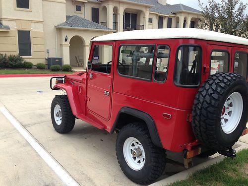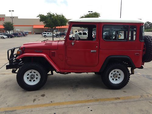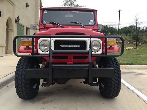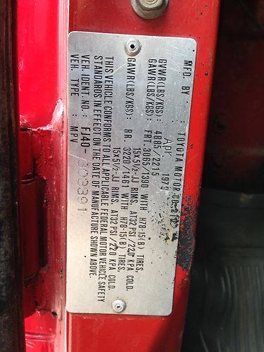 COOL AND ONE OF THE MORE DESIRABLE YEARS,1979 TOYOTA FJ40 LAND CRUISER, F2 ENGINE RUNS STRONG, NEW CARBURETOR AND WHEEL CYLINDERS, NEW TIRES AND RIMS!!! ALL GAUGES WORK, FACTORY POWER STEERING, INTERIOR LOOKS GOOD, GRILL GUARD, FAIR PAINT JOB, THE FJ DOES HAVE A LITTLE RUST UNDERNEATH THE VEHICLE BUT BOTH FLOORPANS ARE IN GOOD SHAPE. PLEASE REVIEW THE PICTURES CAREFULLY, YOU WONT BE DISAPPOINTED