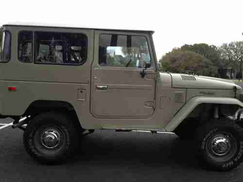 For sale is a 1977 Toyota FJ40 Land cruiser in very good condition-as stock as you fill find. "No rust" this FJ has been repainted and what little rust it had was repaired, the FJ spent its life in Texas until I moved to South Carolina recently. This is not show FJ, but is one of the better FJ you fill find. This FJ has basically had a "frame on restoration completed over the last 2-3 years, again no rust on body or under carriage/ frame. Has the original 2F engine(runs great and strong, starts ups easy and fast, no smoking) and carb, with smog equipment installed, Original drive train, transmission and transfer case, "No leaks" of oil from trans, transfer or differentials. 4wheel drive works fine and it should, four speed trans shifts smooth with no problems. The FJ shows 54 thousand plus on the odometer. The odometer, speedo, oil, gas gauge ect. all work. All lights and horn also work.This auction has a very fare, probably to low of reserve set for the FJ. I'm looking for a fair price for the FJ. Come with no warranty, sold as is, and available to view, test drive. I do have the FJ for sale locally and reserve the right to end the auction if someone make a fair offer.