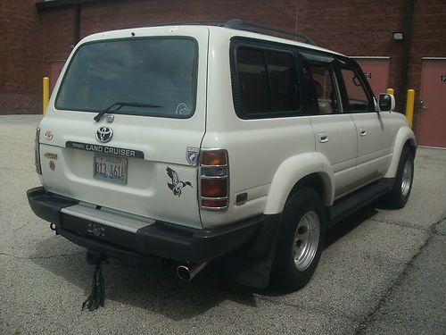 ORIGINAL COLOR GLOSSY WHITE PAINT MINOR SCRATCES AND TINY DINGS LITTLE RUST WAS TREATED ON THE REAR BACK DOOR ALSO HAS ONE 4 OR 5 INCHES LONG SCRATCH ON THE FRONT HOOD BECAUSE OF BUG SHIELD WAS ISTALLED. INTERIOR IS ALL GOOD SHAPE EXCEPT THE FRONT PASSENGER SEAT CUTION HAS THREE INCH OF RIP DUE TO THE AGE AND EXTREEMLY COLD FREEZING WEATHER IN CHICAGO.