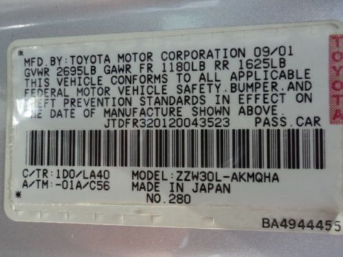 2002 toyota mr2 spyder mid engine rwd 1.8l 5-speed manual leather 15in alloys(US $9,950.00)