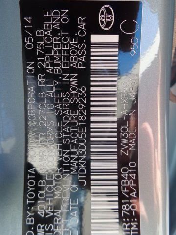 VIN (Vehicle Identification Number): JTDKN3DU5E1829236