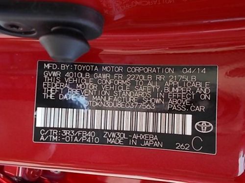 VIN (Vehicle Identification Number): JTDKN3DU8E0377563
