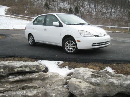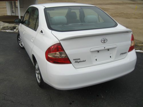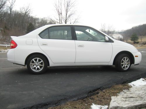 2001 Toyota Prius Hybrid in exceptional condition 124870 miles white with light greyish cloth interior All power, auto, CD, keyless entry, 45+ MPG Body and interior are in great shape with only a few very minor wear areas, non smoker, no odors, just detailed All maintenance up to date, fluids and filters changed New main Hybrid battery ($2700.00) and starting battery replaced with new Toyota parts within the last 6 months New hankook tires with only a few thousand miles on them Brakes done at 120k front and rear Car runs and drives great with no issues Very nice car bid with confidence Prius sold as-is with no warranties implied or expressed and buyer to pay for and arrange any shipping Please look at pics and ask questions |