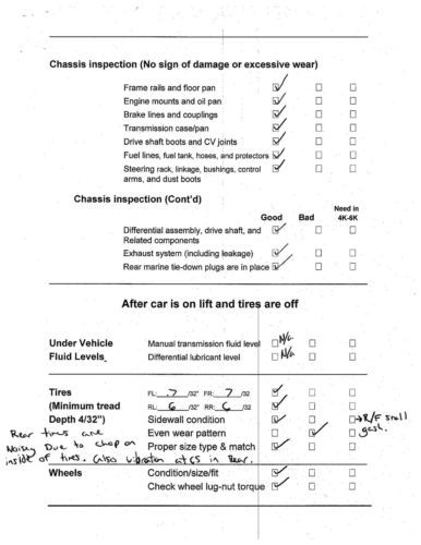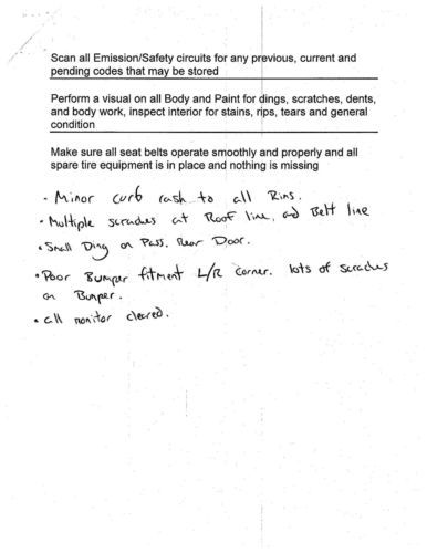 I had a pre sale inspection done by Elite Motors of Warwick, R.I. The report is included with the photos. The inspection found no mechanical flaws except for unusual tire wear. The inspector calls it tire "chop". There are minor body scratches and dings. They include: Curb gashes on rims Small ding on right rear passenger door Poor bumper fit left rear of car. I have been told it is missing a retaining clip. Multiple scratches on roof line, belt line and rear bumper These flaws are also described in the report and I have photographed them. Maintenance records are available.