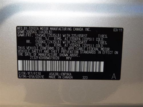 VIN (Vehicle Identification Number): 2T3ZF4DV6BW079028