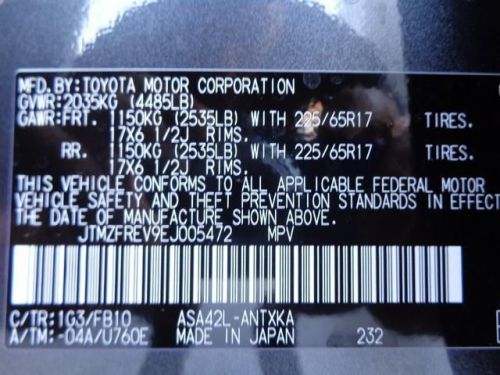 VIN (Vehicle Identification Number): JTMZFREV9EJ005472
