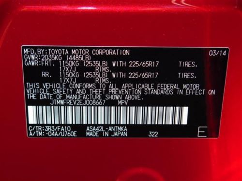 VIN (Vehicle Identification Number): JTMWFREV2EJ008667