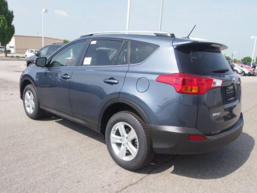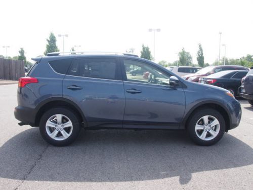 This RAV4 XLE in Shoreline Blue Pearl is a 4 Door Sport Utility with Remote keyless entry, Power moon-roof, Entune Premium Audio with Navigation, Carpet Floor and Cargo Mats, Front Bucket Seats, Split folding rear seat, Front dual zone A/C, CD player and MP3 decoder, Steering wheel mounted audio controls, Telescoping and Tilt steering wheel, Front fog lights, Rear window wiper, Roof rack: rails only, Turn signal indicator mirrors, AWD, Alloy wheels and Traction control.