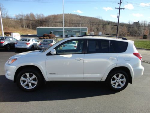 THANK YOU FOR VIEWING OUR 1-OWNER WHICH WE SOLD BRAND NEW, JUST ARRIVED, 100% CARFAX CERTIFIED, TOYOTA CERTIFIED WHICH COMES WITH A 7 YEAR / 100,000 MILE TOYOTA POWERTRAIN WARRANTY PLUS 1.9% APR FOR 60 MONTHS WITH TOYOTA FINANCIAL, 2011 TOYOTA RAV4 3.5L V6 LIMITED 4WD WITH POWER MOONROOF, HEATED LEATHER SEATS, REAR CAMERA, ALLOY WHEELS, SMART KEY WITH PUSH BUTTON START, ETC IN BLIZZARD PEARL PAINT WITH GRAY HEATED LEATHER SEATS AND ONLY 38,193 ORIGINAL 1-OWNER MILES! WE ARE A TOYOTA DEALERSHIP IN WESTERN PENNSYLVANIA AND WE SOLD THIS RAV4 NEW! WE ARE OFFERING THIS SUPER CLEAN V6 RAV4 LIMITED 4X4 AT A SPECIAL, DISCOUNTED 'BUY IT NOW' PRICE ON EBAY FOR A VERY LIMITED TIME. PLEASE VIEW THE COMPLETE LISTING INCLUDING 24 PHOTOS ALONG WITH PHOTOS OF THE ACTUAL WINDOW STICKER. PLEASE CONTACT SCOTT LONG @ (866)226-0570 OR (814)659-1908 OR EMAIL TO LAUFORD@AOL.COM WITH ANY QUESTIONS. THANK YOU FOR VIEWING AND BE SURE TO VIEW ALL OF OUR EBAY LISTINGS ALONG WITH OUR 100% POSITIVE FEEDBACK!