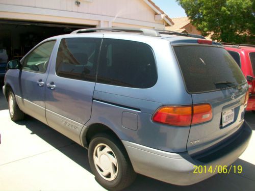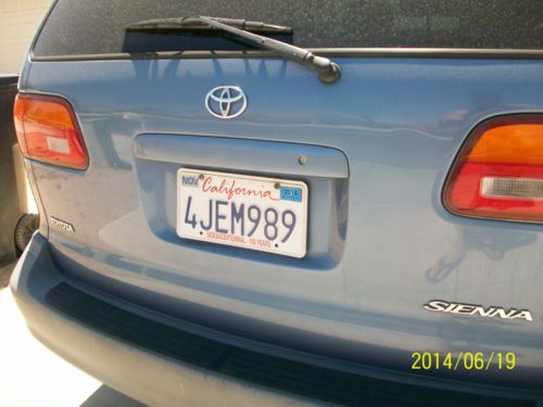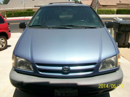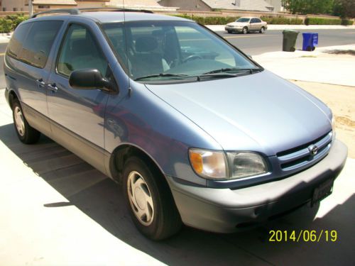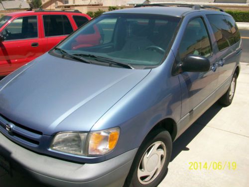 NO RESERVE!!!!!!!!!!!! You are bidding on a 2000 Toyota Sienna LE 5 door van . This van has 126,780 miles on it , it runs like new, very smooth and quite ride. Body and paint are in great condition.the interior has no rips but needs a good cleaning/detailing. the records show timing belt and water pump were done @ 108,000 miles. the motor oil and trans fluid and coolant was changed about 800miles ago... clean title and smog cert. in my name to insure a easy and smooth transfer ,smog cert. is good till 8-22 2014 .Over all everything works. there is a motor oil leak, I add a quart of oil every month or so. also the mirriors on the sun visors are missing that's the way I got it. I think I have described this to the best of my ability .If you have any questions e mail or text or call nick @760 475 7540 thanks for your interest and Happy Bidding!!!!!!!!!!!!!!I RESERVE THE RIGHT TO END THE AUCTION EARLY .THE VAN IS ALSO BEING OFFERED FOR SALE LOCALLY FOR $4500.00