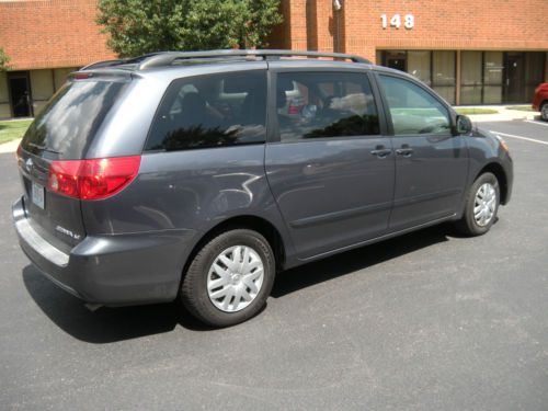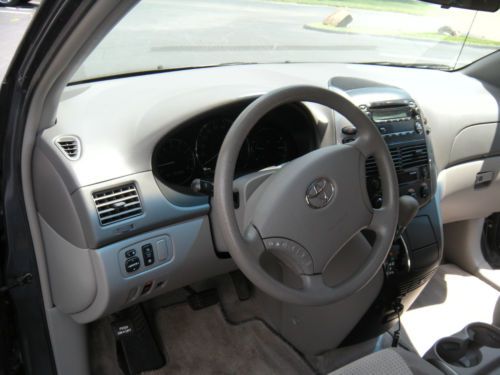 FREE SHIPPING TO THE 48 UNITED STATES WITH THE BUY IT NOW!!! Garrison Brothers of St Louis MO is offering an exceptionally nice one owner Toyota Sienna LE minivan. This vehicle was traded at a local new car dealer and it is loaded with options The van is powered by a 3.3L V6 engine that develops 215hp and is mated to a 4 speed automatic transmission with overdrive, This combination gets 26mpg on the highway. The van is finished in blue grey Metallic and has grey cloth interior . This is the LE model comes standard with features like power windows. power locks with keyless entry, a power sliding side door, CD player driver power front seat and steering wheel touch controls. In addition this vehicle is equipped with rear bucket seats and DVD rear entertainment system. Overall a very nicely equipped vehicle in great condtion VEHICLE CONDITION This vehicle is in excellent condition. The vehicle is Carfax certified and has never been wrecked. The paint and sheet metal are all factory original. The tires are in excellent condition with the front two being brand new . The interior is exceptionally clean and show little if any sign of wear. The previous owner was a non smoker and the cabin smells clean and fresh The vehicle has just undergone 45 point maintenance inspection and passed a Missouri state safety inspection. The entire vehicle has been professionally cleaned and detailed inside and out and you will not need to spend any money to make this vehicle ready of the road . If you have any questions on condition call me!!! 636-530-1133