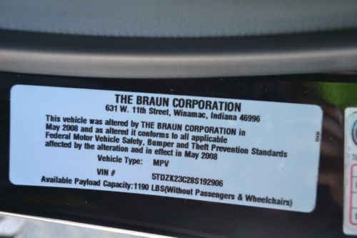 This is a 2008 Sienna LE BraunAbility Rampvan. The vehicle was bought used with 1,500 miles in 2009 by my mother for my father who was in a wheelchair. My mother was the driver, and the van proved extremely helpful in transporting him. Unfortunately my father passed away a couple months ago, and we need to sell the van. I am handling the sale for her.
