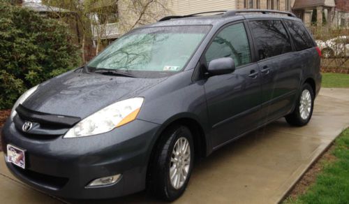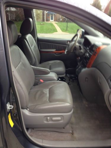 For sale is a very lightly used 2009 Toyota Sienna XLE minivan. It is completely loaded except for AWD. It has Navigation, DVD player, Back-up Camera, Front and Rear Collision Sensors, Power sliding rear doors, Power Hatch, Etc. Etc. (all available power options). It is a dark slate Blue with a Gray Leather interior. It has heated front seats and rear reclineable Buckets. The third row rear seats are stow and go. The vehicle also has new tires. They are Goodyear triple tread tires. These were rated the best all-season tire for this vehicle. It also has a newer battery. There is only 1 small ding in this vehicle and it is located on the drivers door. You can see this in the pictures showing this area.