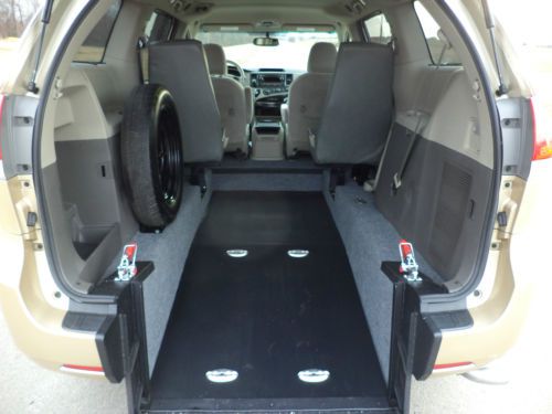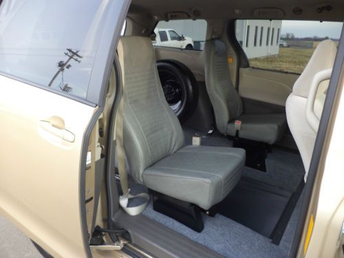 UP FOR SALE IS A 2011 TOYOTA SIENNA WHEELCHAIR/HANDICAP RAMP VAN. THIS VAN HAS THE ATS ADVANTAGE RE L REAR ENTRY CONVERSION. IT HAS THE MANUAL,DUAL LOCKING, NON SKID RAMP WITH THE DUAL PISTON SHOCK ASSIST SYSTEM. THE VAN HAS THE 36 INCH WIDE CONVERSION THAT WILL ALLOW YOU TO TRANSPORT LARGER WHEELCHAIRS AND SCOOTERS ALSO. THE VAN HAS THE FREEDMAN MOBILITY SEATING IN THE MID ROW WHICH ALLOWS360 MORE ROOM IN THE LOWERED AREA . THE VAN COMES WITH ONE COMPLETE Q-STRAINT WHEELCHAIR RESTRAINT SYSTEM WHICH INCLUDES FOUR RETRACTABLE WHEELCHAIR STRAPS AND FULL BELT SYSTEM. EVERYTHING NEEDED TO TRANSPORT YOUR WHEELCHAIR IS INCLUDED IN THIS SALE. THIS SYSTEM IS EASY TO USE AND IS ADA APPROVED. VAN WOULD BE GREAT FOR A FAMILY OR COMMERCIAL USE. THE RAMP STOWS AND DEPLOYS WITH EASE WITH THE SHOCK ASSIST. THE VAN HAS THE POWER SLIDING DOORS AND REAR BACK UP CAMERA ALSO. THIS UNITS INTERIOR IS WELL KEPT WITH NORMAL WEAR. THE EXTERIOR ALSO IS SUPER NICE WITH NORMAL WEAR. VAN JUST HAD A ASE INSPECTION AND SERVICE THIS WEEK WITH NO ISSUES FOUND. THE CONVERSION IS UNDER THE ATS WRITTEN 3 YEAR WARRANTY AND IS A BRAND NEW JUST INSTALLED CONVERSION. THE VAN MAY STILL HAVE SOME POWERTRAIN WARRANTY LEFT AT DODGE. THE VAN RUNS AND DRIVES GREAT AND TOYOTA CHASSIS ARE THE BEST RIDING WHEELCHAIR VANS ON THE MARKET AFTER BEING CONVERTED. WE CAN FINANCE THIS VAN TO BUYERS WITH APPROVED CREDIT BUT CALL FIRST BEFORE BUYING FOR CREDIT APPROVAL. WE CAN OFFER GREAT RATES WITH BANKS THAT UNDERSTAND MOBILITY VANS. USUALLY CAN HAVE YOU APPROVED WITHIN HOURS. PLEASE HAVE ALL FUNDS SECURED BEFORE BUYING AND BE READY TO MAKE THE 500.00 NON REFUNDABLE DEPOSIT WITHIN 24 HOURS OF AUCTION ENDING. FULL PAYMENT IS DUE WITHIN 7 DAYS OF AUCTION ENDING. WE CAN SHIP THIS UNIT ANYWHERE AT BUYERS EXPENSE BUT VAN MUST BE PAID IN FULL BEFORE IT SHIPS. WE ALSO DROP UNITS OFF FOR CUSTOMERS AT THE LOUISVILLE, KY AND NASHVILLE TN AIRPORTS FOR BUYERS DAILY. FLY IN AND DRIVE YOUR NEW MOBILITY VAN HOME. FOR QUESTIONS EMAIL OR CALL ROB @ 270 634 1466 OR RON @ 270 634 0721. CHECK US OUT AT ATSMOBILITY.COM FOR MORE INFO. THANKS