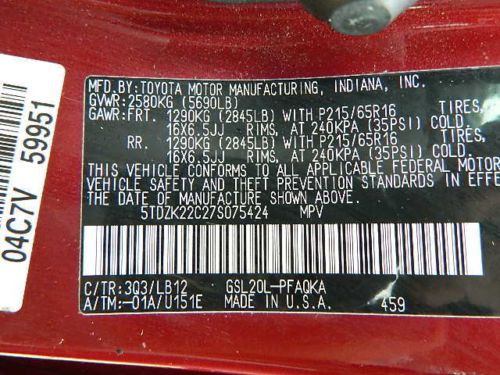 Toyota sienna 7 passanger cold a/c aux input 3rd row free autocheck no reserve