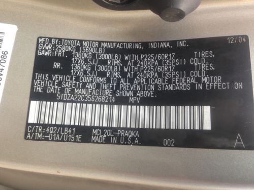 ONE OWNER, SUNROOF, 6 WAY TRANSFER SEATS LEATHERS, HAND CONTROL REBUILT TRANSMISSION AND REBUILT ENGINE BY SHORE TRANSMISSION. THIS IS NIECE RUNNING AND DRIVE VEHICLE THE MILES IS NOTHING. Up for auction is a 2005 TOYOTA SIENNA XLE AWD Braun Entervan Handicap Van with a Power side door, power ramp and hand controls. The van has the 10" lowered floor, rear bench seat, gray cloth seating, removable front seats, power windows, power door locks, power heated mirrors, A/C front and rear, dual front airbags, CD player, tilt and cruise control. It has the spots mounted in floor to tie down a wheelchair. The van runs and drives excellent. It has the 3.3L V6 engine with an automatic transmission. The wheelchair ramp and door work perfect.