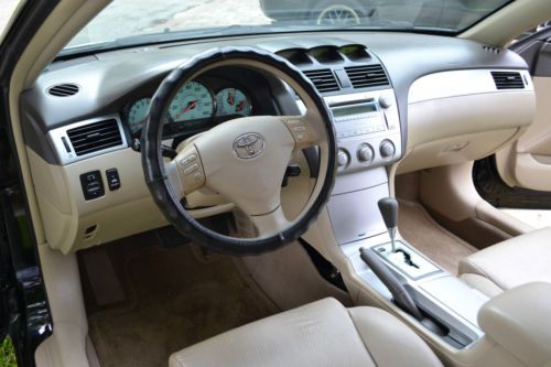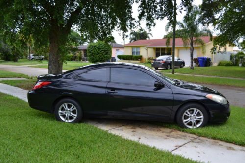 Original owner & lady driven 2005 Black Toyota Camry Solara LS Coupe. 4 Cylinders. 157-Horsepower engine that achieves 24 MPG in the city and 33 MPG on the highway.4-speed AUTOMATIC transmission. Maintenance & service records available. Car is an immaculate conditions. INTERIOR & BODY IS IN GOOD SHAPE. Beige Tan Leather Interior WITH NO TEARS. Michellin tires on all 4 rims. Power window's & seats. Just over 90,000 miles. Driver Airbag,Passenger & Side Airbags. Driven locally. FM/AM CD Changer car radio.Cruise control.Rides execellant. GREAT AUTOMOBILE IN PERFECT CONDITIONS. NEVER BEEN AN A ACCIDENT. SERVICED REGULARLY. Clear Florida Title. Buyer of this vehicle will not be dissapointed.