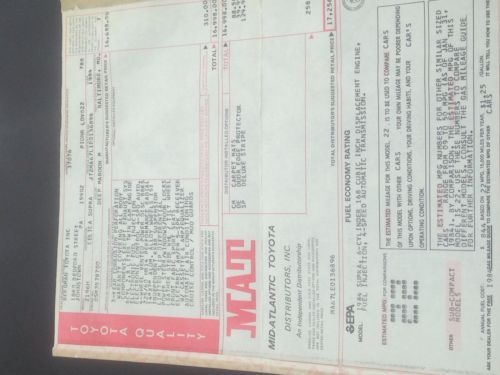 This is a 1984 toyota supra with 36,680 original miles . This was a one owner car till It was just purchased by a friend . Interior is in great shape . Outside is super nice with a couple flaws . A plastic piece of the rocker molding on front driver side is missing. The front bumper has some light scratches . The passenger side mirror cover also so light scratches . And some rust on the lower wheel arch on rear driver side . Everything works as it should to the best of my knowledge expect the lever to open rear hatch . Hatch does open with key and close / locks . Maybe a simple fix but that's up to the new owner . Some parts on the underside of car have surface rust also. Other then that I ll let the pictures do it justice . If you have any additional ? S please ask and I ll do my best to answer them . It is forsale locally so reserve the right to end auction . The car can be viewed / inspected if you wish to do so . A 500.00 non refundable deposit is required in 3 days of auction end . Cash or cashiers check due at time of pick up for the rest of the amount . Car to be picked up 7 days of auction end unless prior arrangement s are made . Can help with shipping if need be .