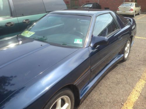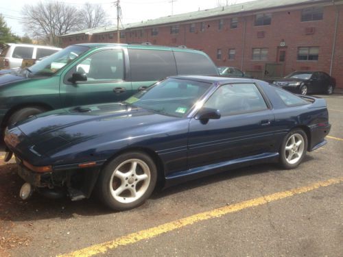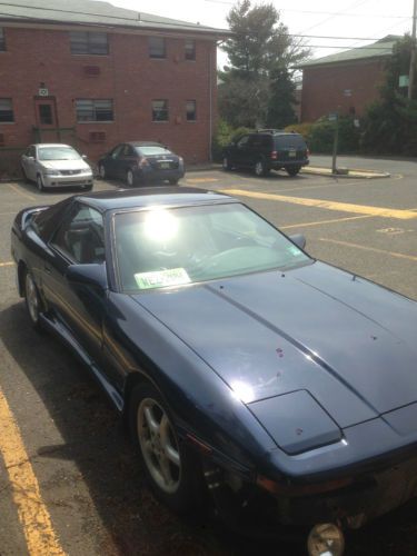 Please read the ENTIRE DESCRIPTION!!! IMPORTANT: First picture was taken before any damage all those taken this past week. If you notice any purple shapes that is the lens on my camera (they are in the same spot in every pic) The Backstory My first car was a 1986.5 NA 5 Speed, I spent quite sometime looking for another supra, back in 2004 I had found this car in outside of Green Bay, WI, 2 plane tickets later I bought it with 1000k and put the first thousands miles driving it to NJ. I've had the car for 10 years and have only put on about 25k on it, I am the third owner (records show I'm the fourth because it was transferred to my mother since I was only 19 at the time). The guy I bought it from had it as a show car removing the air conditioner, cruise control and wipers (the motors work just wipers and wiper arms are needed). The guy also changed the locks so the keys only allow access to driver side door and ignition though the power locks and trunk hatchet allows access to the rest of the car. I've lost it since but I was also given the dyno sheet with 313 HP. The first owner I was told was an old man who like the 2nd owner kept it in the garage. Up until these last few years this car has been garage kept and covered, while only being used during May to September each year hence only the 25k in 10 years, in the time I wasn't during it, it was either started and taken for a quick spin every week or two or I had the fluids drained. Due to life changes I no longer have a garage and/or the time to invest into this car. I've resisted selling this car for the past year because these cars are too far and few in between but with work and school full time I'd prefer it will go to a better home. I have the carfax and their has no accidents. No surprises everything below is everything that I am aware of that needs work, no matter how small. The Bad (along with solution/what I've done to fix it so far - I believe I blew a piston, engines starts but noise leads me to believe it could be a rod, or wrist pin. My mechanic feels the same before this I had found a small boost leak - Front Bumper has been forcefully removed when the car got towed (due to unrelated spite-filled neighbor) While at the impound lot she was hit by a tow truck in the driver side rear fender with some paint exchange. Unfortunately and not surprising they are not responsible for what happens to your car during & once towed. Solution: .bodykitsdotcom or any other, The bumper I got is only 136 though you can replace it with anything you'd like - Rear bumper missing right most plastic clip Solution: Very simple either replacement clip or can be reattached in many other ways, can be pushed in so doesn't hang and I was more focused on large issues so never got around to it - Targa Top, The built-in screw on the front passenger-side of the targa broke and came loose (little cousin) though it still closes it is an imperfect seal, during a high-pressure car wash or torrential down pour you will get a small leak of droplets. Solution: I've kept the car covered, have only hand-washed it since, and as mentioned before it only came out during the summer hence not an issue. I've also purchased an 2nd targa top and was going to replace the interiors when I had engine trouble. Hence replacement is in the back seat. - Passenger side skirt has a crack in the center Solution: needs to be mounted better so does not rise, a quick fix. Minor issues that did not bother me: The shift boot is missing a clip so the bottom hangs about half an inch does not affect anything and hard to even notice. The lights by the rear view don't work I believe its just the bulb but not sure, the vanity mirror light does work though the passenger window can only be controlled by the driver side. The plastic on Drive side interior door handle broke but door opens/closes just fine. The center console & hatchback privacy screen show are sun-worn. Very back of roof hangs by about an inch or so only noticeable when I opened the hatchback. The Good - The engine is a stock turbo 7M-GTE, once fixed it can tuned to your delight - Front mounted intercooler (brand eludes me) - custom intake - 3 inch Blitz Nur-spec exhaust system (Silencer included but not installed...because why?) - Targa Top, great for spring/summer - S-AFC II - The Super AFC II (Air Flow Converter) - Greddy Turbo Timer installed - Greddy Boost Controller installed (2nd setting up to 14 psi) - Pillar pod w/ Greddy Turbo gauge installed (not connected) - The body kits are mostly in good condition - Low mileage, garage kept most of her life. - I've replaced the windshield through safelite and it has a transferable warranty - Just replaced the battery about a week ago. - Upgraded cd player w/Aux, and Rockwell Fosgate speakers installed - I believe I have an extra oil filter, and I have complete sets of the front & rear brakes pads, if for whatever reason it needs to be outside I'll gladly include the cover. I have a box with two 10" speakers, two 12s" would not fit. The box needs to be glued in a corner and the amp is included though not wired. I also have a few supra related things that I'm willing to part with it, also I have the Mother's car wax that I used to hand wash it. In ten years I've gone over 150+mph less than five times and over 100+ less than 12. Shes definitely fast and fun, though once repaired care much be taken to pay attention to your speed you could easily hit 90-100 in third by around 4000 rpm. Fast speed I've taken her was 166 mph on a track. Though it may be hard to see I've taken every step possible to ensure I'd have this car for a long time thus I did not street race and/or stupid crazy stunts with it. All this car needs is someone with a few weeks and a pair of mechanics hands. Please please I sincerely ask that you bid with intention of taking care of this car. I've spent alot time/money/effort for this car and as I've mentioned before their really are to few and far in between of these l