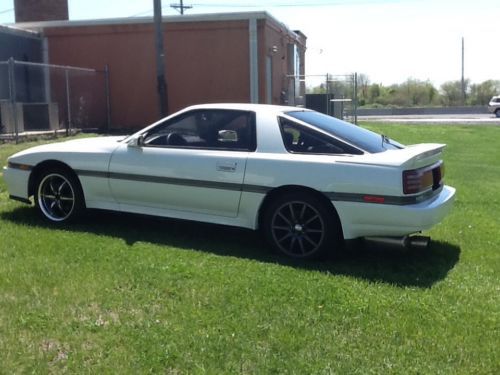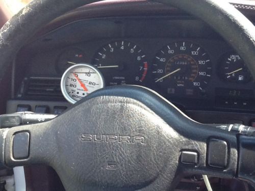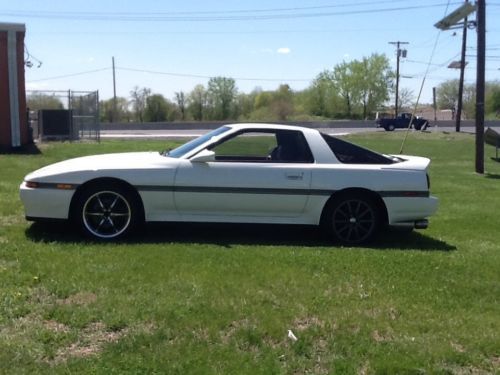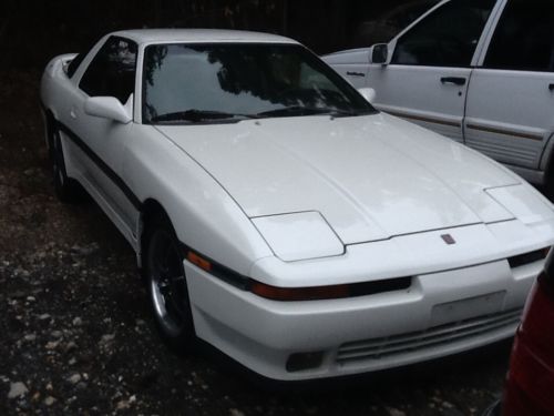 UP FOR AUCTION IS A BEAUTIFUL 1989 TOYOTA SUPRA TURBO HATCHBACK WITH SPORT ROOF. HAS A 3.0 LITER V6 TWIN CAM 24 VALVE TURBO WITH INTERCOOLER ENGINE (7m/GTE). MILES @ 123,867. SUPRA HAS HKS SUPER DRAGGER EXHAUST MUFFLER ( FULL AFTER MARKET EXHAUST ). SMOOTH SHIFTING AUTOMATIC TRANSMISSION. WITH A NORMAL TRANSMISSION OR SPORTS TRANSMISSION OPTION. HAS PRO-COMP BOOST GAUGE. CAR IS IN GREAT SHAPE WITH SUPER CLEAN BURGUNDY LEATHER INTERIOR. NO RIPS OR TEARS. THE EXTERIOR IS A SHINY PEARL WHITE PAINT. CAR HAS MINOR BACK WHEEL WELL SURFACE RUST. SUPRA HAS A SPORT ROOF. RIMS ARE 17 INCH PROLINE RACING ALLOYS. PRIMEWELL P2-900 TIRES WITH 80% TREAD. SOME FEATURES ARE POWER LOCKS, WINDOWS, & SEATS. VALOR DVD & RECEIVER (650 WATT) @ 6 INCH. DVD, CD, AUX, & AM/FM RADIO. VEHICLE WAS JUST SERVICED. IT'S A BEAUTIFUL CAR THAT IS READY TO BE DRIVEN!!!